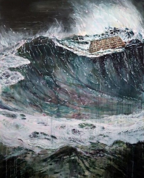 De titel ‘Raft#2’, reddingsvlot, maakt van de boekenkast een dubbelzinnig en bizar element. In Psalm 93 staan tegenover de bestendigheid en betrouwbaarheid van Gods heerschappij de zee en alles wat het leven dreigt weg te spoelen. Cultuur en godsdienstige tradities, bewaard in eerbiedwaardige boeken, bieden geen houvast meer. De dichter vertrouwt dat Gods macht en majesteit, waarvan de boeken spreken, zelf een reddingsvlot zijn.