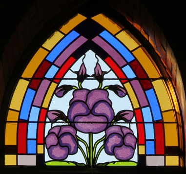 Vanuit de Mariakapel werd de iris herhaald. De ipomea staat symbool voor verbinding en toegenegenheid en de akelei voor het lijden van Christus.