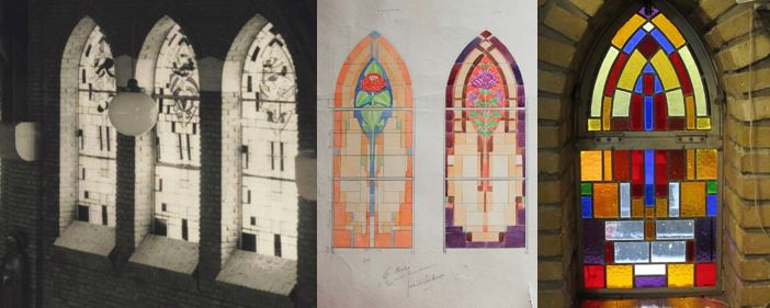 In de jaren ’60 zijn alle glas-in-loodramen verwijderd en vervangen door blank glas waar later een gele folie op werd aangebracht.