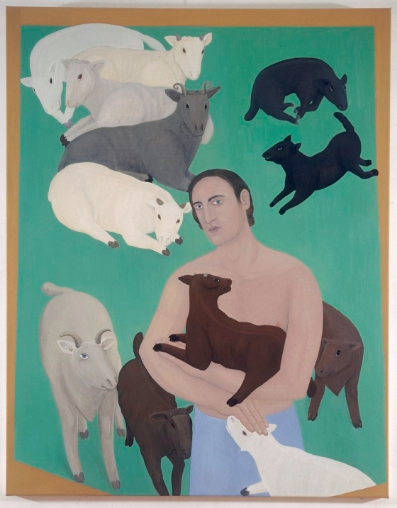 Zo zou het schilderij Met drie zonnebloemen, een konijn, een hond en een paar vissen in eerste instantie niet als religieuze kunst bestempeld worden, totdat duidelijk is dat de drie zonnebloemen symbool staan voor de drie personen in God, de drie-eenheid (afbeelding 3). Voor Van der Meer speelt het christelijk geloof dus een essentiële rol in het werk, terwijl de meeste beschouwers het werk anders zullen interpreteren.