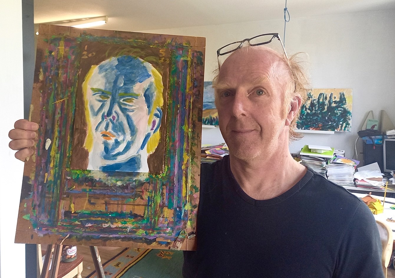 Stephan schildert al vele jaren bijna dagelijks een zelfportret. Het is een onderwerp dat altijd voorhanden is. En er is een element van ‘warming up’, het beginnen van de dag met een studie, in zijn geval een zelfportret. Maar er zijn ook veel fundamentelere redenen om juist zichzelf te portretteren.