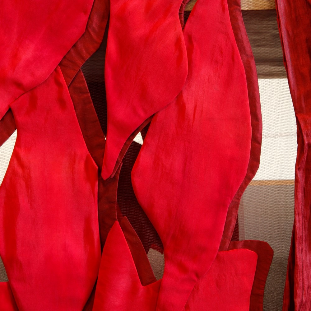 Het rode kleed wordt maar bij enkele gelegenheden gebruikt. In de eerste plaats met Pinksteren. Daarnaast in diensten waarin belijdenis gedaan wordt en bij de bevestiging van ambtsdragers. Het rode kleed staat voor de begrippen geest, liefde, vuur. Dit kleed bestaat uit twee verschillende delen naast elkaar. Onregelmatige, vlamachtige vormen zijn in twee lagen aangebracht. Dit geeft een soort schaduweffect. Deze vormen bevinden zich op een doorzichtige ondergrond, zodat ze lijken te zweven. Het gedeelte ernaast is sterk geplooid, is min of meer driedimensionaal en geeft de suggestie van stromen.