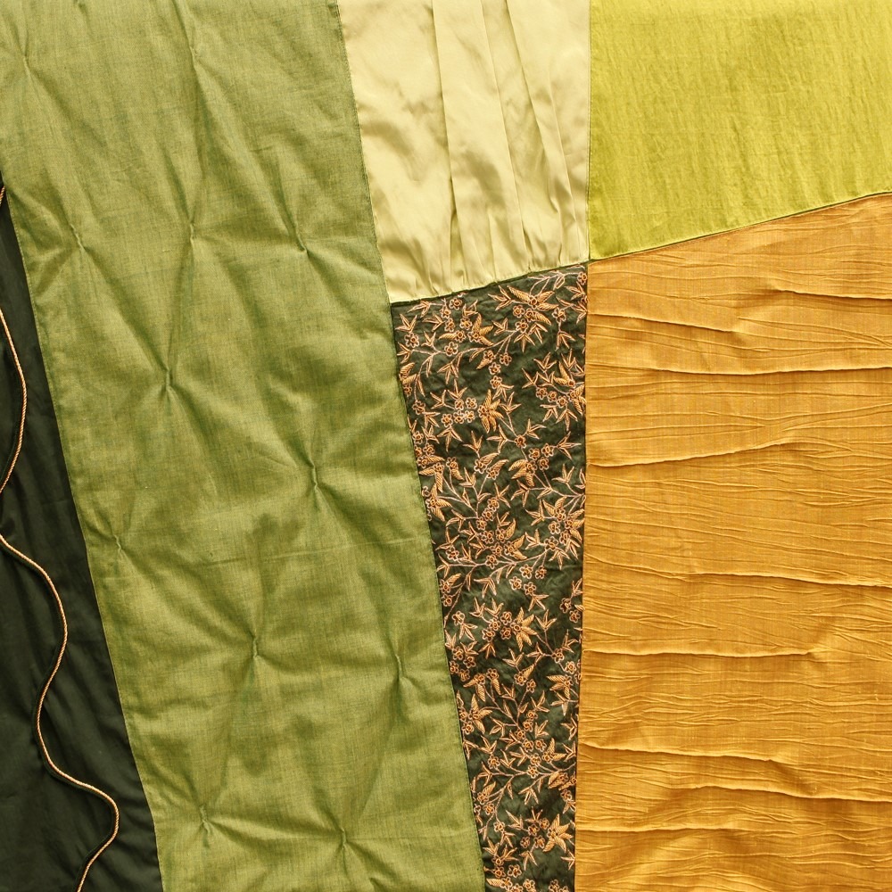 Het groene kleed wordt gebruikt in de twee lange perioden waarin geen feestdagen zijn. Dit is dus voor de ‘gewone’ zondagen. Begrippen die hierbij passen zijn hoop, toekomst, leven. Om die reden is er gebruik gemaakt van diagonale lijnen, die iets van dynamiek meebrengen. Het gedeelte dat op de tafel ligt vormt nagenoeg een vierkant en het is een slag gedraaid ten opzichte van de rest van het kleed. Deze asymmetrie versterkt eveneens het idee van beweging.