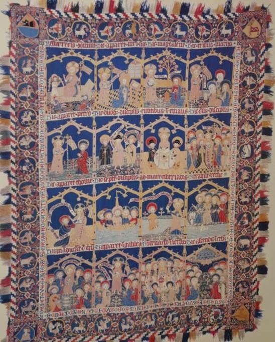 In 1507 weefden de zusters van klooster Lüne bij Lüneburg in Duitsland een opstandingstapijt. Een soort stripverhaal van Jezus’ verschijningen na zijn opstanding uit de dood (zie het hele tapijt onderaan de meditatie). Aan Johannes’ verhaal van de wonderbare visvangst (Johannes 21:1-14) wijdden zij vier tafereeltjes. Dat Jezus roept en Petrus door het water naar hem toekomt is samengebracht op één tafereel. Wij zullen aan beide scènes apart aandacht besteden.