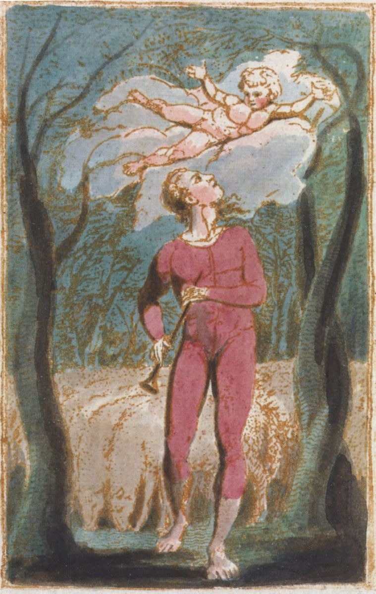 Het kind huilt als hij fluit en hij vraagt hem dan om vrolijke liedjes te zingen en deze liedjes op te schrijven in een boek. Zo kwam Blake ertoe dit boek met liedjes voor kinderen te maken. Deze liederen weerspiegelen de filosofie van Rousseau die vond dat een kind moest worden opgevoed naar zijn eigen natuur, dat wil zeggen dat de verbeeldingskracht van het kind in vrijheid moest worden gestimuleerd. De essentie van zijn geloof was zijn visie op ‘God van binnen’, ‘Jezus de verbeelding’. God/Jezus woont in ieder mens van jongs af aan. Een kind is heilig, alles is heilig, nog voor je er kennis of instructie aan toevoegt.